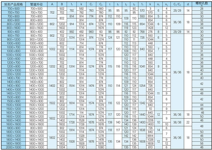 XB矩形風(fēng)道纖維織物補(bǔ)器主要尺寸