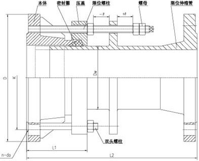 單法蘭松套限位伸縮接頭特點:實現(xiàn)了管道一邊法蘭連接,一邊為焊接的不一致性的方便連接。